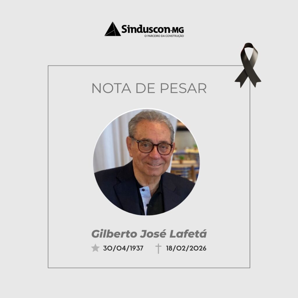É com profundo pesar que comunicamos o falecimento do sr. Gilberto José Lafetá, pai do presidente do Sinduscon-MG, Raphael Rocha Lafetá.